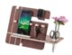 Ornament practic pentru masa de birou. Oferă un spațiu permanent pentru diverse obiecte uzuale, ex. Telefon mobil, ceas de mână, agendă, creioane, foarfecă, etc. Pașii necesari: marcare, tăiere cu fierăstrăul, perforare, șlefuire, încleiere și asamblare. Descriere în limba germană.