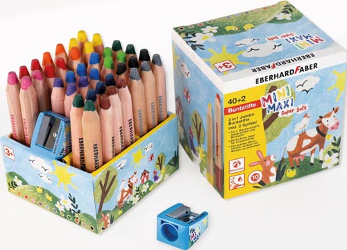 Creioane colorate EBERHARD FABER MINI Maxi SuperSoft Jumbo 3 in1, cca. ø 10 x 120 mm, 40 buc