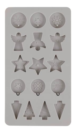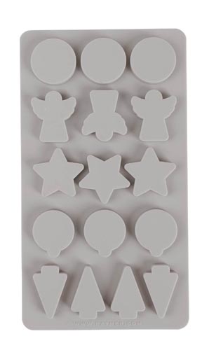 1 formă cca. 145 x 264 mm, 16 modele cca. 35 - 40 mm și înălțime 8 mm. Material necesar: cca. 190 g beton creativ, 140 g beton bijuterii, 150 g raysin, 140 g pudră de ipsos, 90 g resin, 130 g săpun