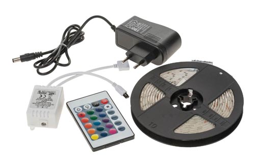 Flexibilă, impermeabilă, cu port USB, cca. 3 m, cu 90 LED-uri, autoadeziv, se poate rupe în locurile marcate. Cu senzor, baterie (CR2032), sistem de alimentare și telecomandă (24 butoane). 12 W, 220 - 240 V, 50/60 Hz, 1 buc