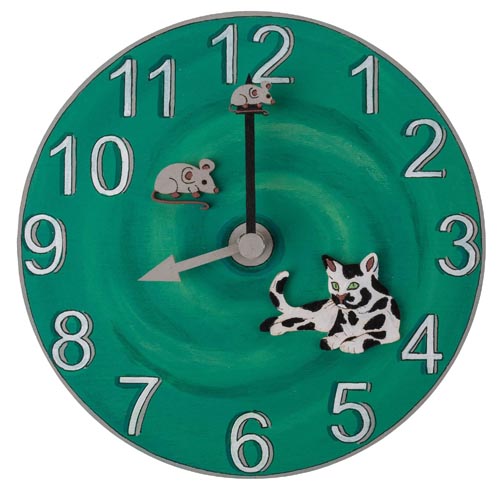 Ceas perete de lemn, cu model de animale