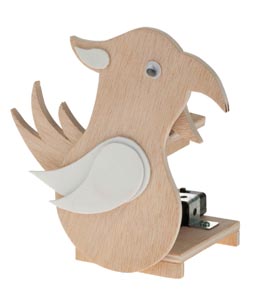 4 șabloane diferite, 4 nivele de dificultate. Pe formele decupate se fixează un motor. Animalele se pot decora colorat din cauciuc deco. Pașii necesari: marcare, tăiere, încleiere, găurire, șlefuire, răsucire, îndoire, lipire electrică. Descriere în limba germană.