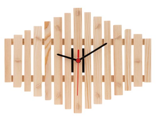 Un ceas de perete atrăgător din punct de vedere vizual, ușor de realizat, cuarț cu mișcare silențioasă. Deoarece benzile de lemn din acest pachet de lucru sunt tăiate la lungime și lipite doar, acest set de ceas este potrivit și pentru studenții mai tineri. Cu ace de ceas și opțiune de agățare. Lucrări necesare: marcare, tăiere, șlefuire/lipire, găurire, asamblare și vopsire. Dimensiuni: aprox. 330 x 240 x 35 mm