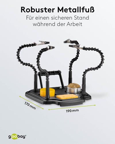Accesoriu de ajutor, a treia mână de încredere pentru lipit, vopsit, pentru lucrări electrice, cum ar fi plăcile de circuite, fabricarea de modele, dar și pentru meșteșuguri sau artă. Prevăzut cu un burete, vată de curățare, diluator si suport. 1 buc.