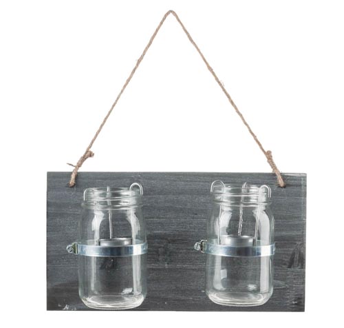 Ornament perete de lemn - cu sticlă, cca. 300 x 95 x 160 mm, 1 buc, maro/gri tocit
